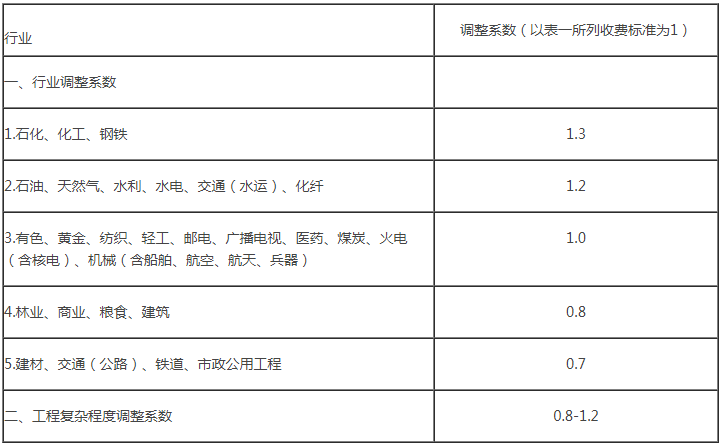 注:工程復(fù)雜程度具體調(diào)整系數(shù)由工程咨詢機構(gòu)與委托單位根據(jù)各類工程情況協(xié)商確定。