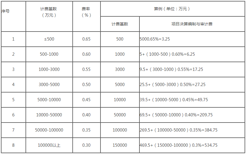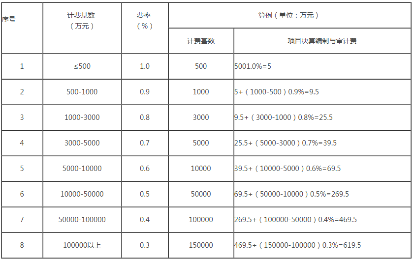 以工程施工費與設(shè)備購置費之和最為計費基數(shù),采用差額定率累進(jìn)法計算。