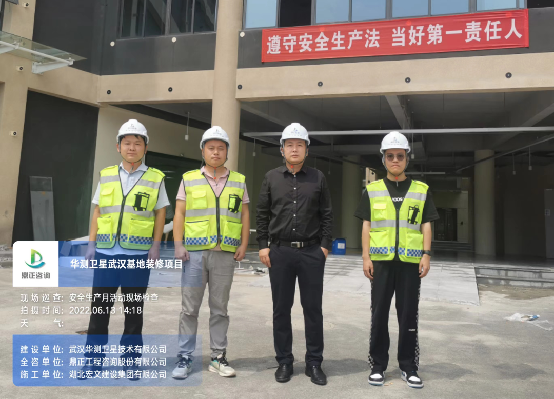 6月13日,鼎正咨詢副總經理張虎、項目管理部經理張力來到華測武漢基地項目現(xiàn)場,開展2022年“安全生產月”活動巡查,貫徹落實“抓安全管理就要抓隱患排查”思想,對華測項目在施工期間所開展的項目安全進行檢查。張總表示:“針對現(xiàn)場發(fā)現(xiàn)的安全隱患,除了通過發(fā)送安全檢查報告、監(jiān)理通知單方式形成書面記錄以外,還要安排專人督促整改落實情況,做到安全隱患零容忍?!彼麖娬{杜絕僥幸心理,安全生產必須警鐘長鳴,要遵循安全生產科學規(guī)律,及時整治潛在隱患,筑牢安全生產防線。