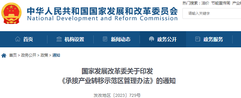 國(guó)家發(fā)展改革委關(guān)于印發(fā)《承接產(chǎn)業(yè)轉(zhuǎn)移示范區(qū)管理辦法》的通知