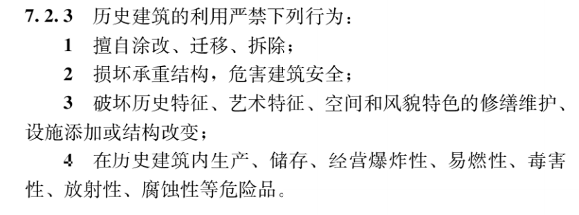 此外,明確提出歷史建筑的利用嚴禁4類行為。