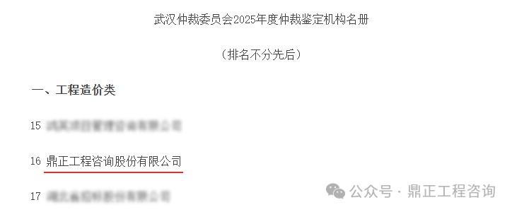 仲裁鑒定機構名冊每兩年遴選一次。本次遴選嚴格遵循《武漢仲裁委員會(武漢國際仲裁中心)仲裁鑒定管理辦法》,結合仲裁鑒定工作實際,經公告、申報、評分、審議等程序,最終經嚴格遴選擇優選聘。鼎正再度入選,既是對我司工程造價專業領域領先優勢與扎實功底的權威肯定,更是對鼎正恪守執業規范、秉持公正立場的高度信任與認可。