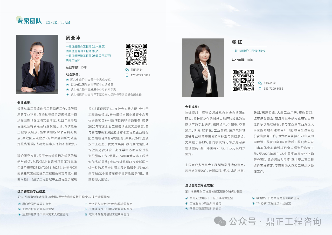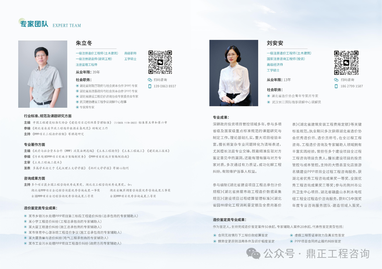 故,組建了一支精通工程造價、熟悉法律法規,且融合工程設計、招標投標、合同管理、施工組織設計的復合型專業團隊,其中專家團隊如下: