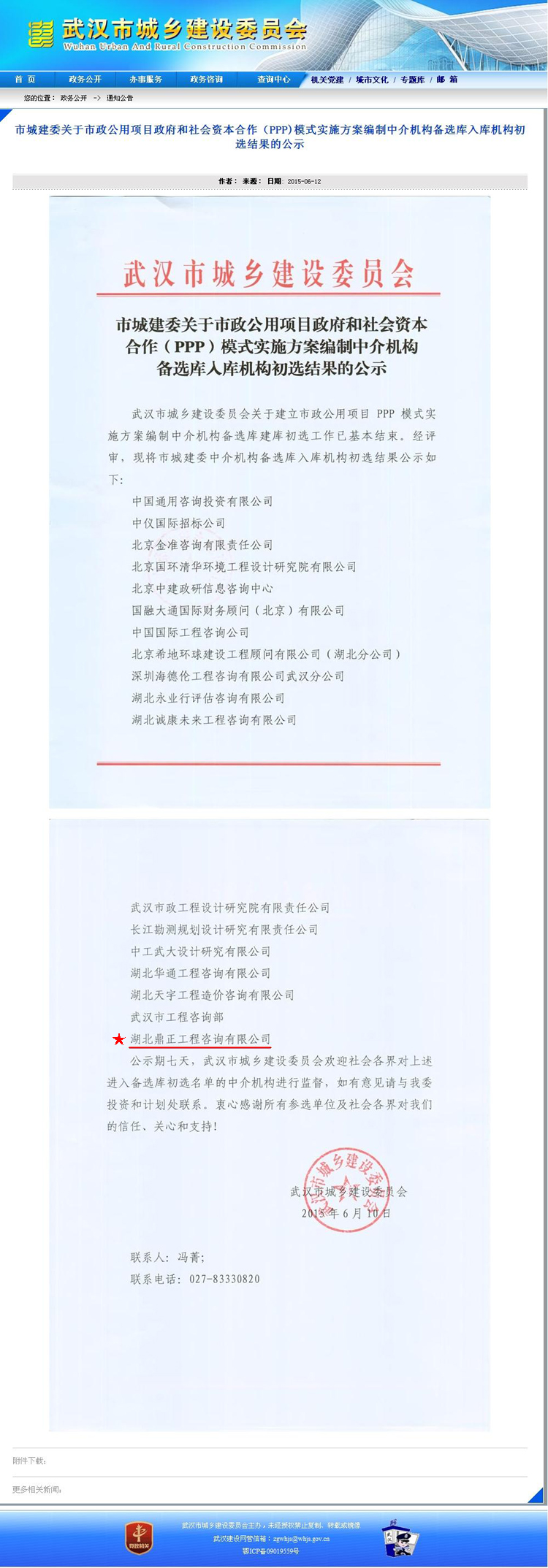 【經營成果】我司入圍市城建委關于市政公用項目政府和社會資本合作(PPP)模式實施方案編制中介機構備選庫