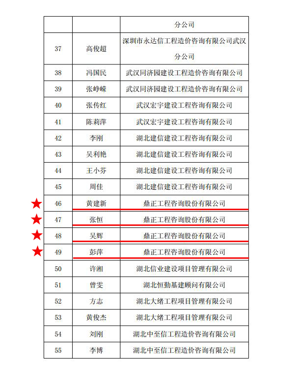 根據武建價協【2016】77號文件公示,我司員工楊靜、吳瓊榮獲2015-2016年度武漢市"優秀造價工程師"稱號,黃建新、張恒、吳輝、彭萍榮獲2015-2016年度“優秀造價專業人員”稱號。此次榮譽的獲得,既是對我司同志工作的肯定,也展示了鼎正人愛崗敬業、爭創一流的精神風貌。鼎正公司將以更加昂揚的斗志和飽滿的熱情,服務于企業、服務于社會!