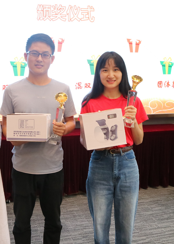 副總經(jīng)理毛迎霞為混雙三等獎(jiǎng)獲得者王雁然、張愉頒獎(jiǎng)