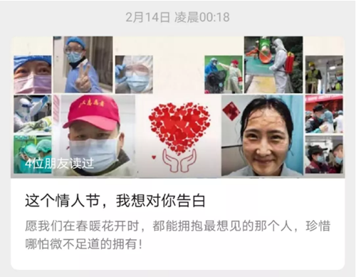2月14日情人節(jié),我們向全國各地奮戰(zhàn)在一線從未后退的醫(yī)護(hù)工作者、各條戰(zhàn)線上的志愿者、堅(jiān)守崗位的工作者們告白。希望通過這篇短文傳遞的正能量,牽動我們把更多的大愛之心傳播到社會的每一個(gè)角落。
