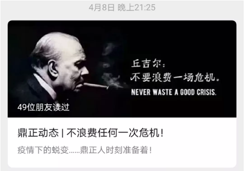 在疫情爆發(fā)之始,鼎正公司領(lǐng)導(dǎo)高度關(guān)注疫情動態(tài),辦公場所每日消毒,周密防控。在封城之時(shí),呼吁全體同事安心在家做好防疫,不給社會增加負(fù)擔(dān)。