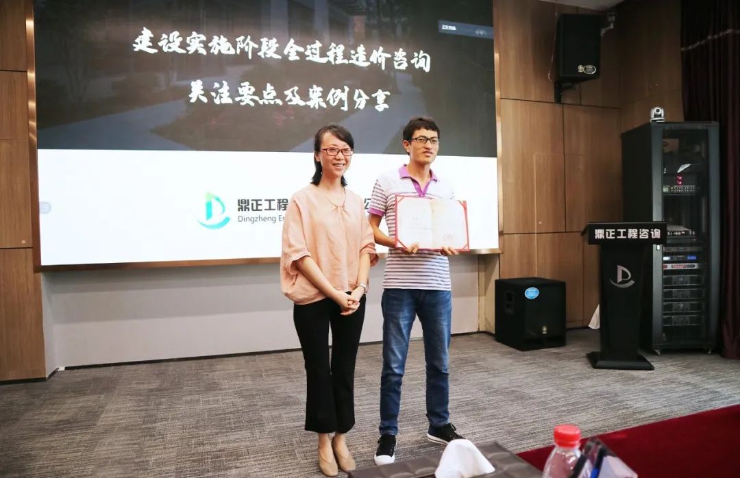 在交流會尾聲,鼎正技術(shù)總監(jiān)朱立冬、副總經(jīng)理毛迎霞為鼎正荊州分公司技術(shù)負責(zé)人李素娟、項目經(jīng)理沈雯頒發(fā)榮譽。